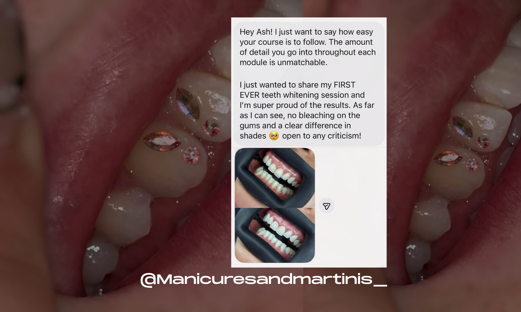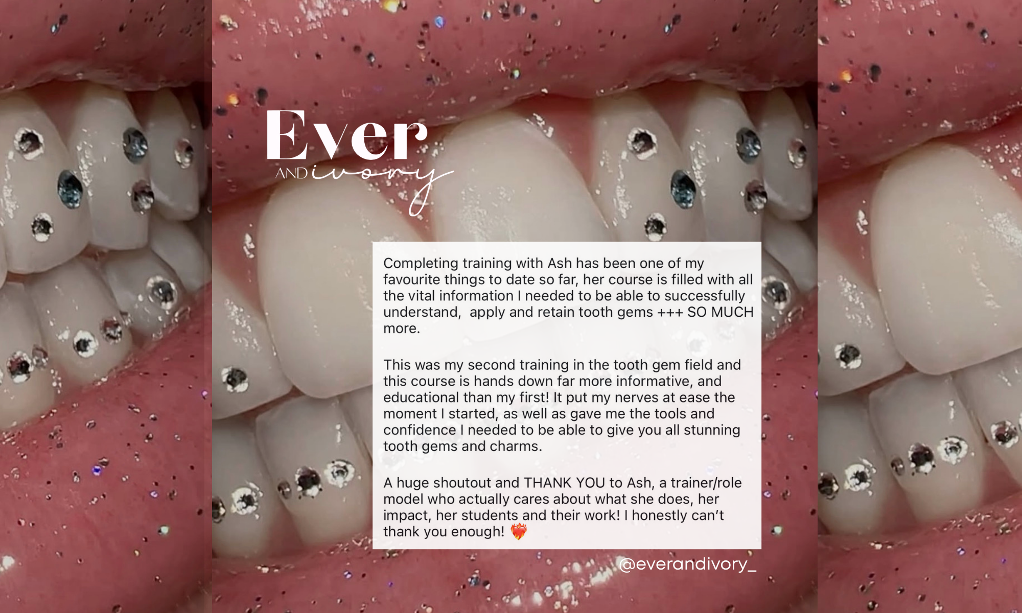 After working with thousands of clients, multiple brands and training artists across the country, Ash is known for setting the standard in precision tooth gem application, exceptional whitening results, quality service and her no-nonsense approach to education.